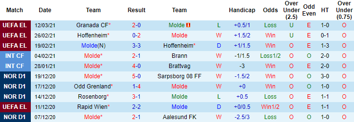 Thống kê cho thấy 8 trận sân nhà gần đây của Molde tính trên mọi đấu trường khép lại với tối thiểu 3 bàn/trận. 8 trận sân khách trước đó của Granada cũng kết thúc với kịch bản có từ 3 pha lập công trở lên. Vì vậy mức kèo Tài Xỉu 2 1/2, theo Xỉu ăn ít trên sàn giao dịch châu Á sớm cho thấy khả năng nổ Tài không được đánh giá cao.