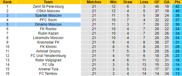 + Lịch sử đối đầu Dynamo Moscow vs Spartak