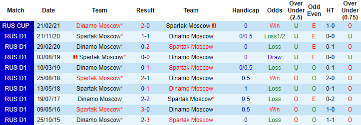 Thống kê ủng hộ kèo Xỉu khi 5 trận đối đầu liên tiếp gần đây giữa Dynamo Moscow vs Spartak đều khép lại với chỉ tối đa 2 pha lập công. 2 trận sân nhà gần đây của Dynamo Moscow tại giải VĐQG Nga cũng không thể vượt mốc 2,5 bàn thắng. Trận đối đầu giai đoạn lượt đi giải VĐQG Nga mùa này giữa hai đội khép lại với tỷ số hòa 1-1.