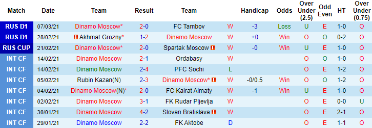 + Thống kê 10 trận gần nhất của Dynamo Moscow