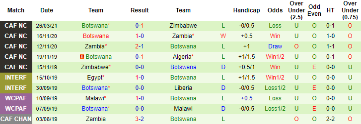 + Thống kê 10 trận gần nhất của Botswana