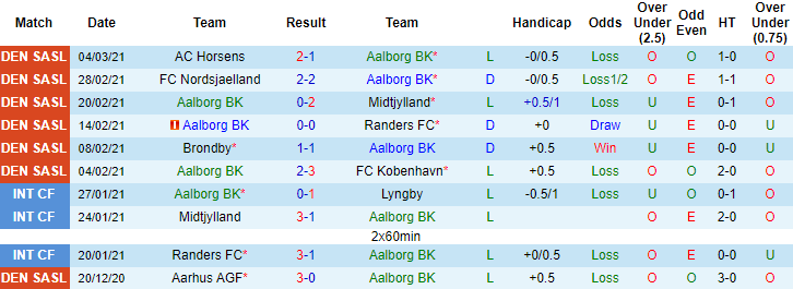 + Thống kê 10 trận gần nhất của Aalborg