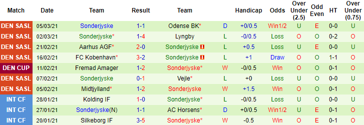 + Thống kê 10 trận gần nhất của Sonderjyske