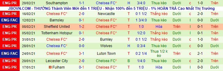 + Thống kê 10 trận gần nhất của Chelsea