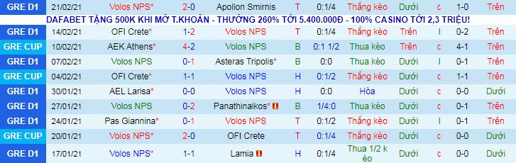 + Thống kê 10 trận gần nhất của Volos