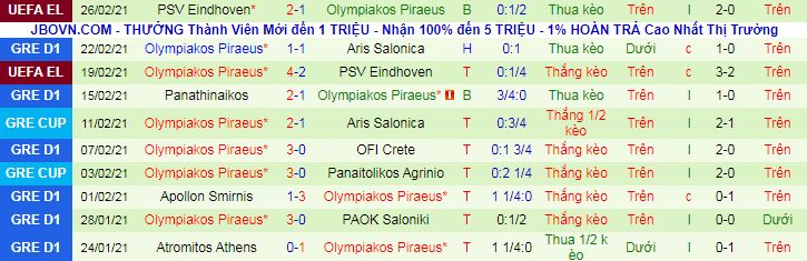 + Thống kê 10 trận gần nhất của Olympiakos