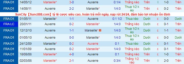 + Lịch sử đối đầu Auxerre vs Marseille