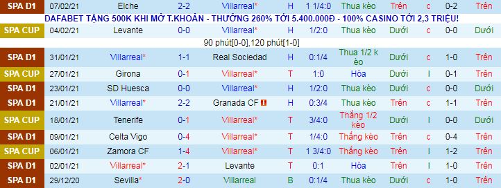 Lịch sử cũng đã chỉ ra rằng cả 3 lần 2 đội gặp nhau trên sân nhau trên sân nhà của Villarreal, 90 phút đều kết thúc với trên 2 bàn thắng được ghi. Vì vậy, người chơi nên lựa chọn đặt niềm tin vào OVER để có cơ hội giành chiến thắng cao hơn.
