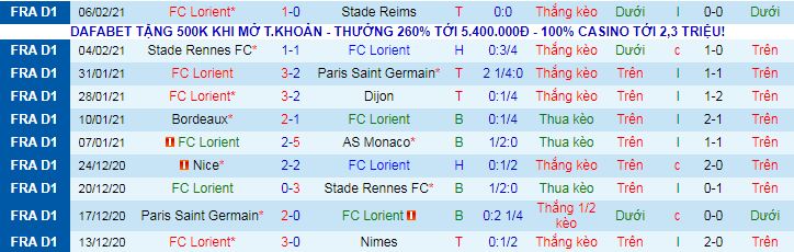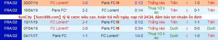 + Lịch sử đối đầu Lorient vs Paris FC