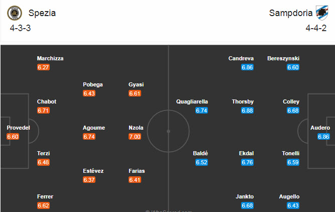 Đội hình dự kiến Spezia vs Sampdoria: