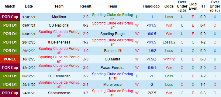 Sporting Lisbon dẫn đầu bảng xếp hạng với 35 điểm sau 13 trận, hơn đội xếp thứ hai Porto 4 điểm. Tuy nhiên lúc này Sporting Lisbon đang phải đối mặt với khó khăn lực lượng với danh sách 4 trụ cột dính chấn thương. Trận gần nhất Sporting Lisbon để thua Maritimo 0-2 tại Cúp quốc gia dù chấp -1 theo kèo châu Á.