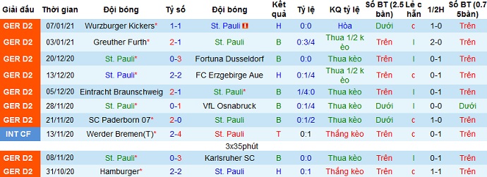 + Thống kê 10 trận gần nhất của St. Pauli