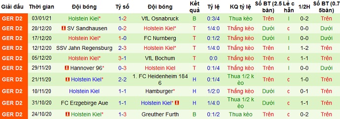 + Thống kê 10 trận gần nhất của Holstein Kiel