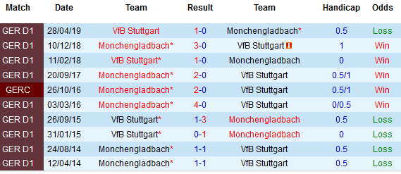 Trên thực tế, Stuttgart đang sở hữu hàng công hiệu quả hơn so với Monchengladbach và cũng bị chọc thủng lưới ít hơn. Về cơ bản, chỉ số chuyên môn của đội chủ nhà không thua kém so với các vị khách. Hơn nữa, trong 2 lần hành quân đến sân của Stuttgart gần nhất đều chứng kiến Mochengladbach thua trắng.