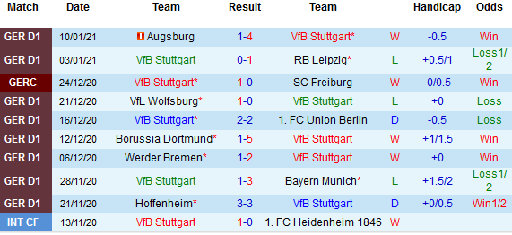 + Thống kê 10 trận gần nhất của Stuttgart
