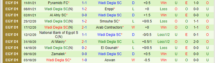 + Thống kê 10 trận gần nhất của Wadi Degla
