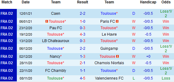 + Thống kê 10 trận gần nhất của Toulouse
