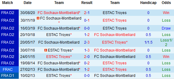 + Lịch sử đối đầu Troyes vs Sochaux