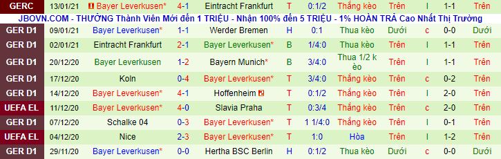 + Thống kê 10 trận gần nhất của Leverkusen