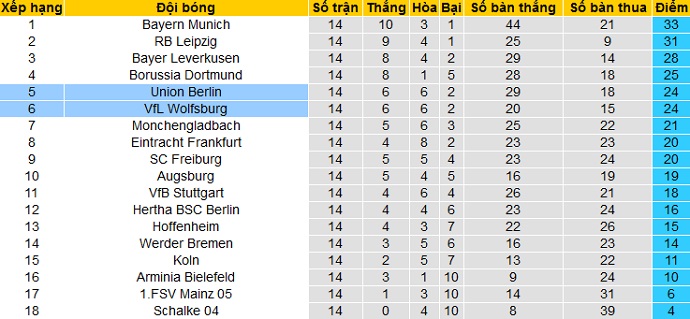 Sau 14 vòng đấu tại giải vô địch quốc gia Đức Bundesliga, cả Union Berlin và Wolfsburg đều cùng có được 24 điểm và đang đứng sát nhau trên bảng xếp hạng. Trong khi Union Berlin đứng ở vị trí thứ 5 thì Wolfsburg đứng ngay dưới ở vị trí thứ 6 do kém về hiệu số bàn thắng.