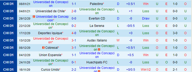 + Thống kê 10 trận gần nhất của Univ de Concepcion