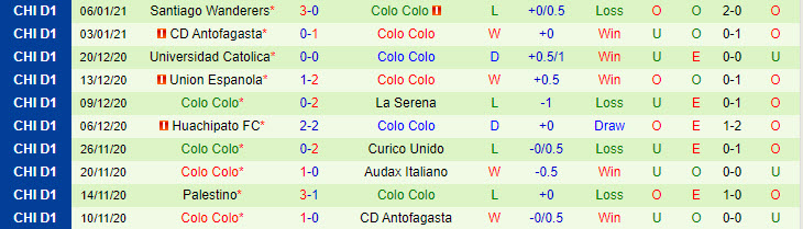 + Thống kê 10 trận gần nhất của Colo Colo