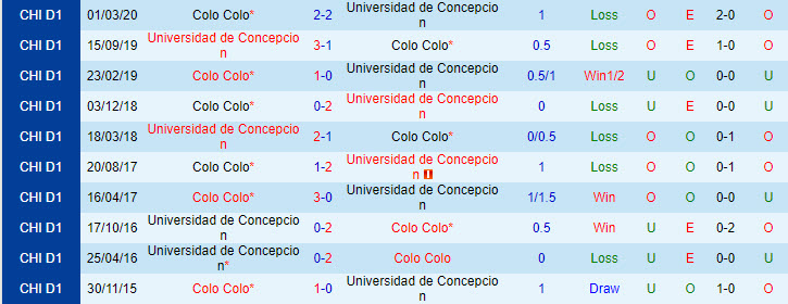 Tỷ lệ kèo Univ de Concepcion vs Colo Colo