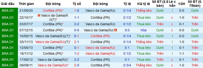 Tỷ lệ kèo Vasco da Gama vs Coritiba