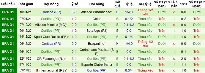 Đã 10 vòng đấu liên tiếp Coritiba không biết đến chiến thắng, trong đó chỉ có được 3 trận hòa và để thua tới 7 trận. Thành tích sân khách của đội bóng cũng hoàn toàn tương tự khi ở 5 lần du đấu gần nhất Coritiba chỉ có được 1 trận hòa, để thua ở cả 4 trận còn lại.