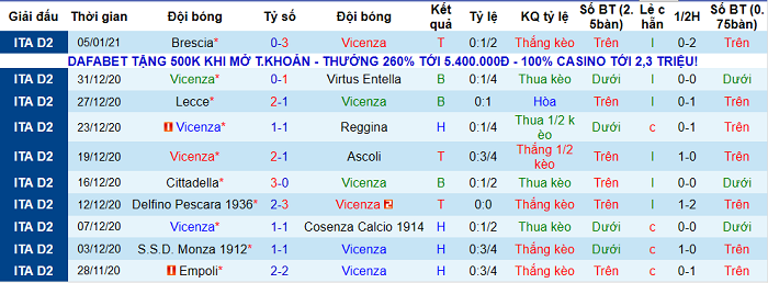 3/4 trận sân nhà gần nhất của Vicenza tại Serie B chứng kiến không quá 2 pha lập công. Điều tương tự cũng xảy ra với 4/7 trận sân khách của Frosinone. Với mật độ thi đấu tương đối dày như hiện tại, hai đội khó tạo nên một màn so tài ‘bùng nổ’ về số bàn thắng.