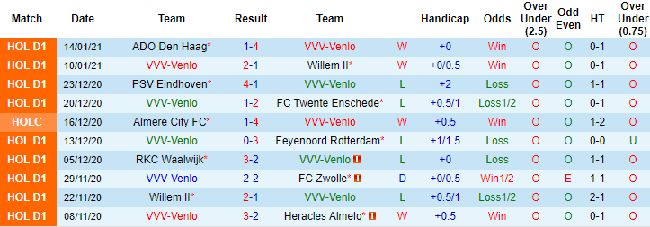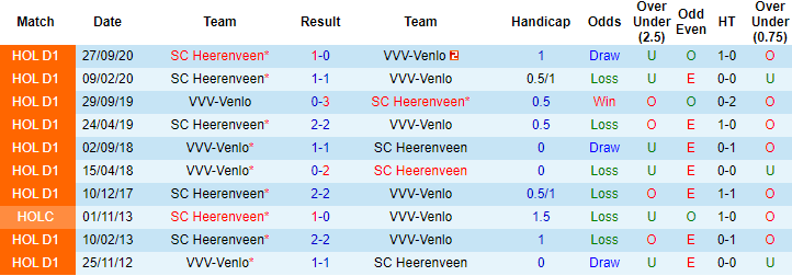 Trong vòng 20 trận đối đầu Heerenveen trước đây tính trên mọi đấu trường, Venlo chỉ thắng được 1 trận. 19 trận còn lại Heerenveen thắng 11, hòa 8. 6 lần làm khách gần đây trên sân của Venlo, Heerenveen bất bại với 4 chiến thắng và 2 trận hòa.