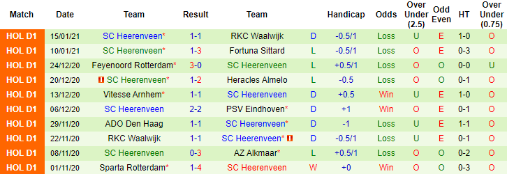 + Thống kê 10 trận gần nhất của Heerenveen