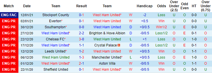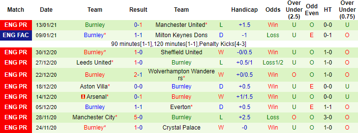 Trên bảng xếp hạng Premier League 2020/21, West Ham đang xếp thứ 10 với 26 điểm. Trong khi đó Burnley mới giành được 16 điểm, xếp ở vị trí thứ 16. Trong vòng 8 trận đã đấu trên sân khách tại Ngoại hạng Anh mùa này, Burnley để mất điểm tới 7 lần với 4 thất bại và 3 trận hòa.