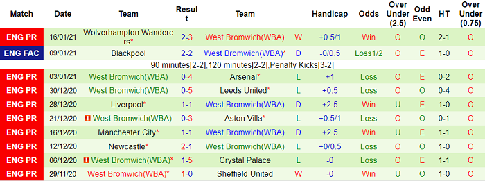 - Thống kê 10 trận gần nhất của West Brom