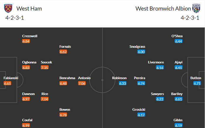 Đội hình dự kiến West Ham vs West Brom