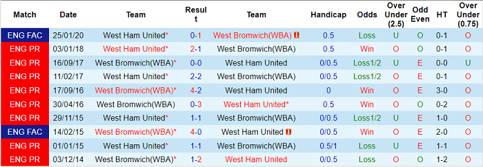 Phong độ và thống kê đối đầu West Ham - West Brom gần đây