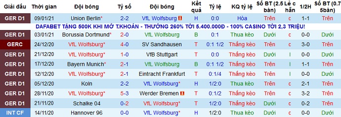 + Thống kê 10 trận gần nhất của Wolfsburg