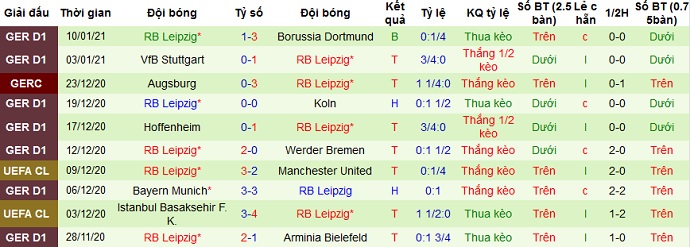 Tuy nhiên mới đây RB Leipzig đã khá bất ngờ khi để thua Dortmund ngay trên sân nhà với tỷ số 1-3 trong khi trước đó họ đang bất bại ở cả 9 trận liên tiếp. Kể từ đầu tháng 12 đến nay RB Leipzig vẫn đang bất bại trong cả 5 lần đu đấu với 4 trận thắng và 1 trận hòa.