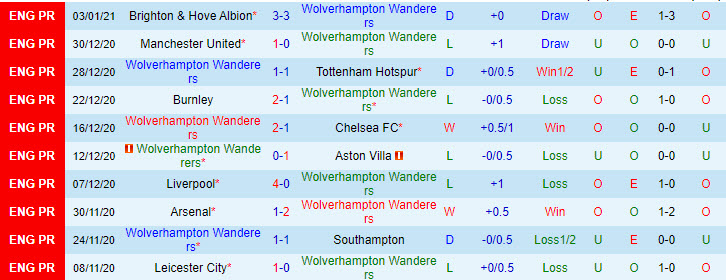 + Thống kê 10 trận gần nhất của Wolves