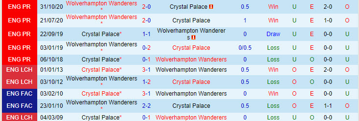 Điểm đáng nói, Crystal Palace hoàn toàn lép vế trước Wolves thành tích đối đầu những năm gần đây. Chi tiết, Zaha cùng đồng đội thua tới 3, hoà 1 và chỉ thắng 1 ở 5 trận vừa rồi chạm mặt Wolves.