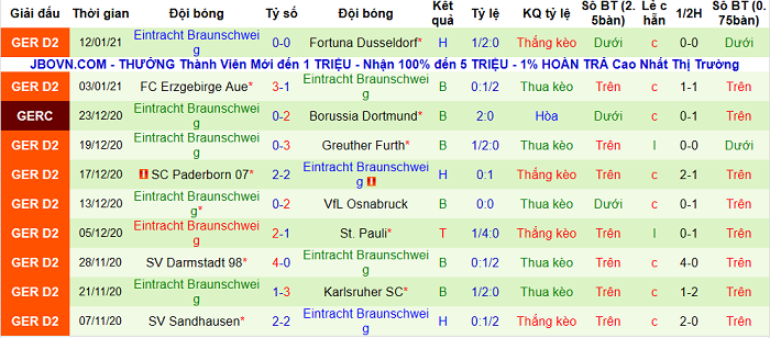 - Thống kê 10 trận gần nhất của E. Braunschweig