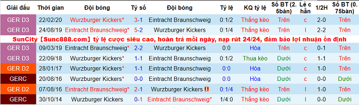 Tỷ lệ kèo Wurzburger vs E. Braunschweig