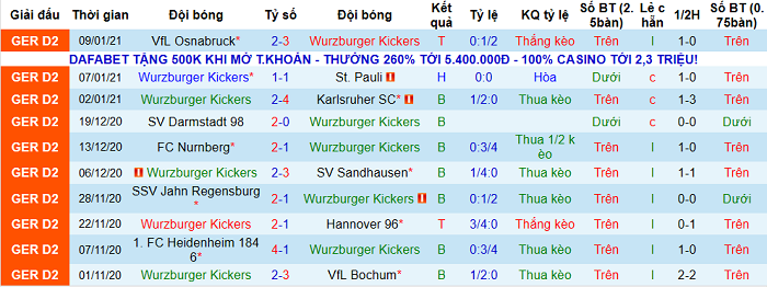 - Thống kê 10 trận gần nhất của Wurzburger