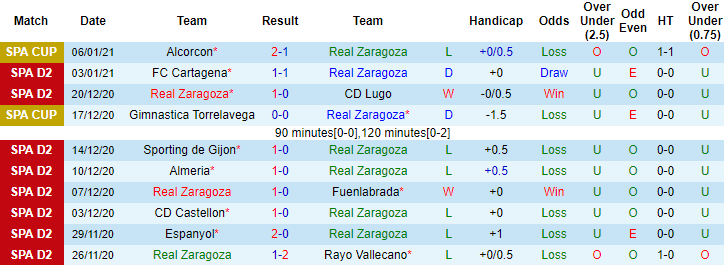 + Thống kê 10 trận gần nhất của Zaragoza