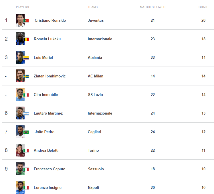 Top ghi bàn Serie A 2020/21