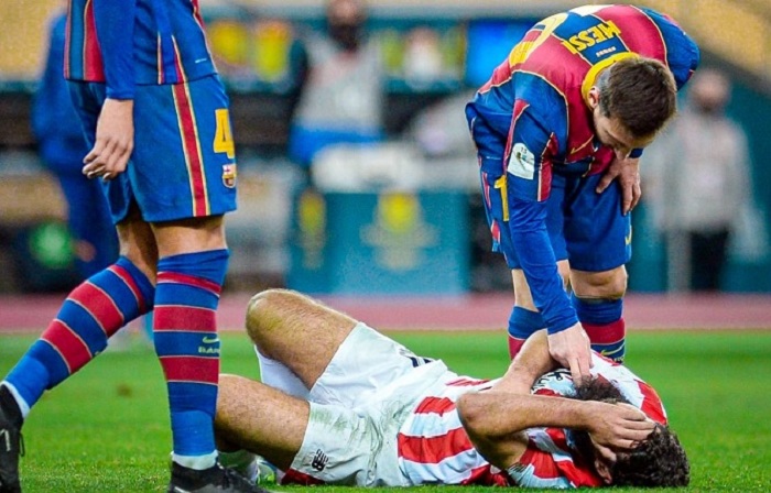 Rạng sáng nay 18/1, trong tình huống bóng gần như là cuối cùng của trận chung kết Siêu Cúp Tây Ban Nha 2021, khi Barca đang bị Bilbao dẫn 2-3, Messi đã có cú đánh rất mạnh vào đầu Asier Villalibre.