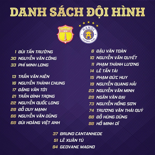 Danh sách đăng ký cầu thủ của Hà Nội FC ở trận gặp Nam Định